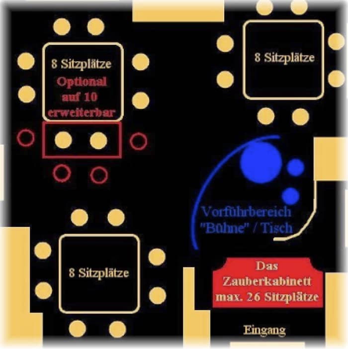 Bei geschlossenen Gruppen ist eine Buchung im Zauberkabinett bis 28 Personen möglich.